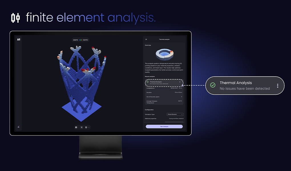 LFAM toolpath creation + print analysis for both polymer and metal + automatic toolpath optimisation for better builds. These analysis tools transform manufacturing from reactive troubleshooting to proactive problem-solving.